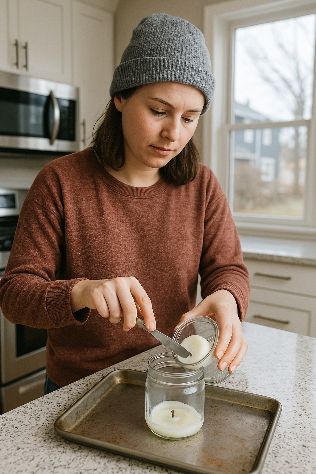 Once I got comfortable with cleaning out old jars, I thought—why not refill them? I started small, using soy wax flakes and essential oils.