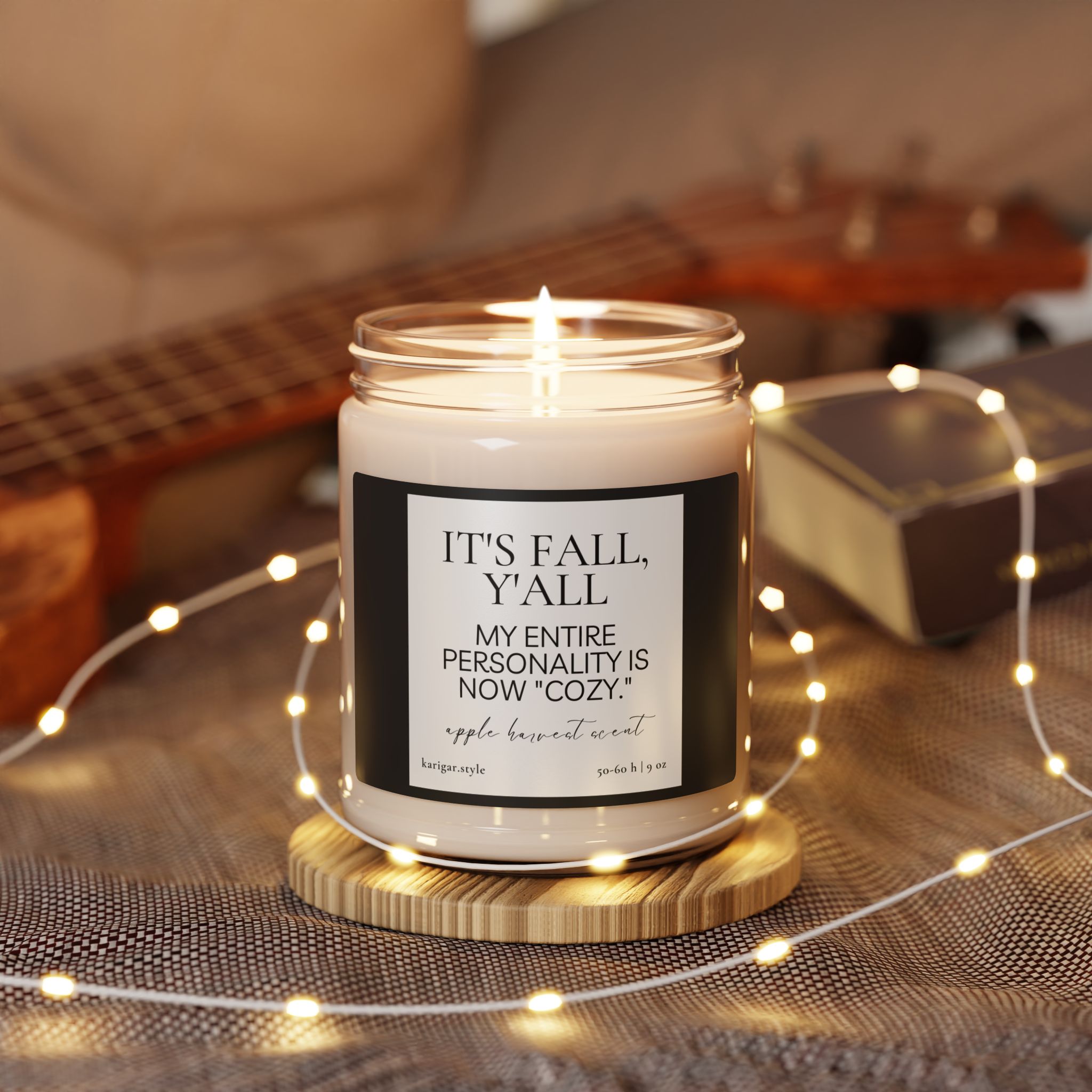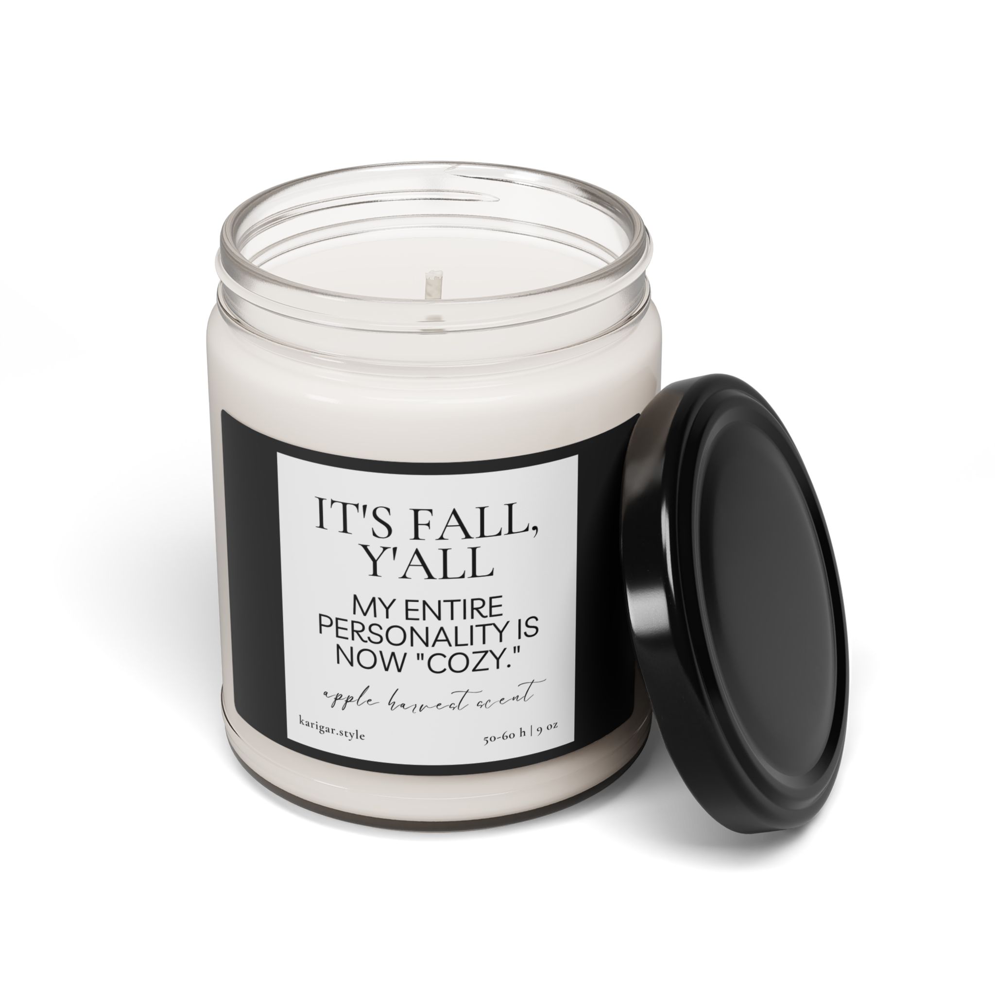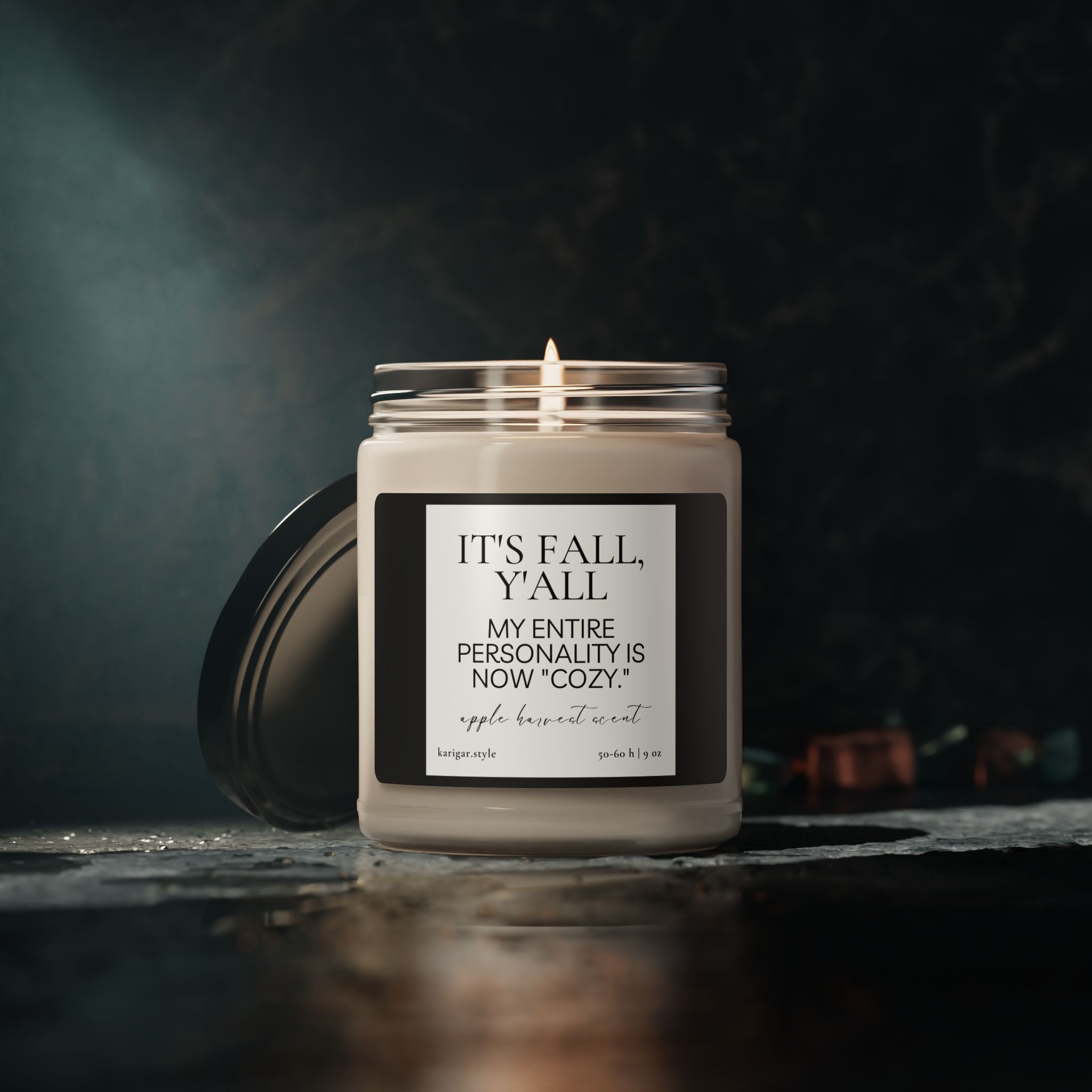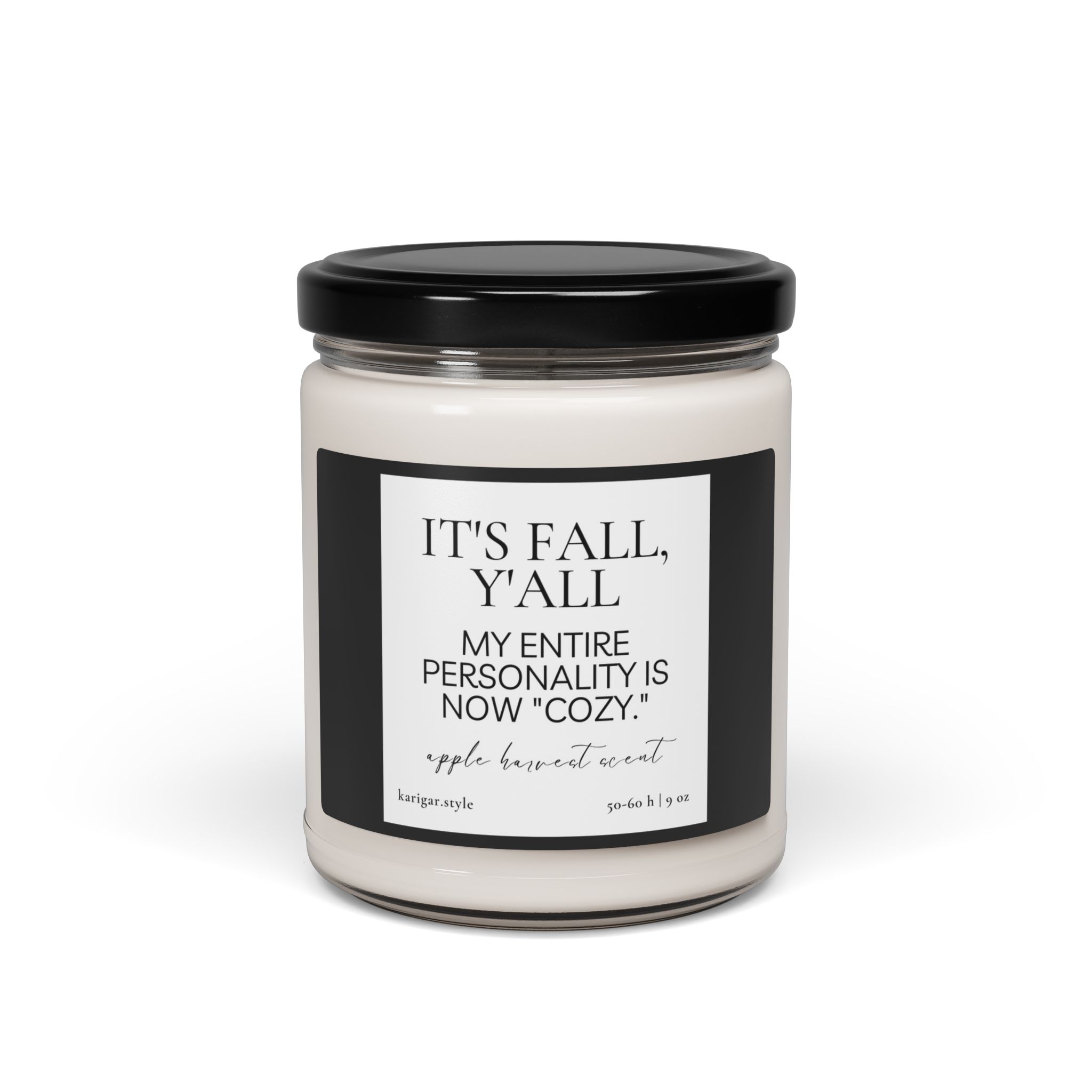 Fall Scented Soy Candle | Funny Fall Candle | “My Personality is Now Cozy” | 9oz Apple Harvest Soy Wax Candle