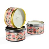Discover a small token of botanical beauty with our charming floral tin candles. They are the perfect pop of color and fragrance for any small space, designed to bring the joy of a garden indoors. Each floral smelling candle features a lovely bouquet scent of fresh roses and sweet peonies.