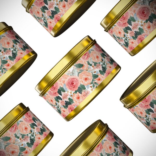 Discover a small token of botanical beauty with our charming floral tin candles. They are the perfect pop of color and fragrance for any small space, designed to bring the joy of a garden indoors. Each floral smelling candle features a lovely bouquet scent of fresh roses and sweet peonies.