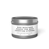 Funny Campfire Story Candle | Bad Weather Adventure Gift | Natural Soy Wax Tin for Cozy Nights