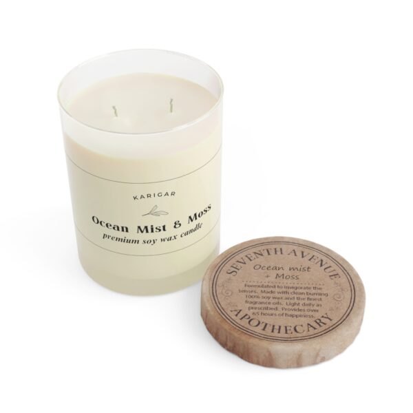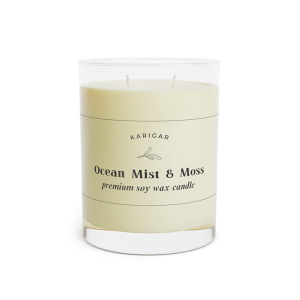 The Ocean Mist and Moss clean scent is a complex blend of salty ocean air, cool morning mist, and the rich, earthy fragrance of green moss. As a premium Ocean Mist and Moss aromatherapy candle, it helps to ground your spirit and clear your mind. This beautiful Ocean Mist and Moss natural wax candle is hand-poured with 100% American-grown soy wax. The elegant Ocean Mist and Moss full glass candle design, with its double wicks, provides a powerful, clean burn for a truly immersive experience.