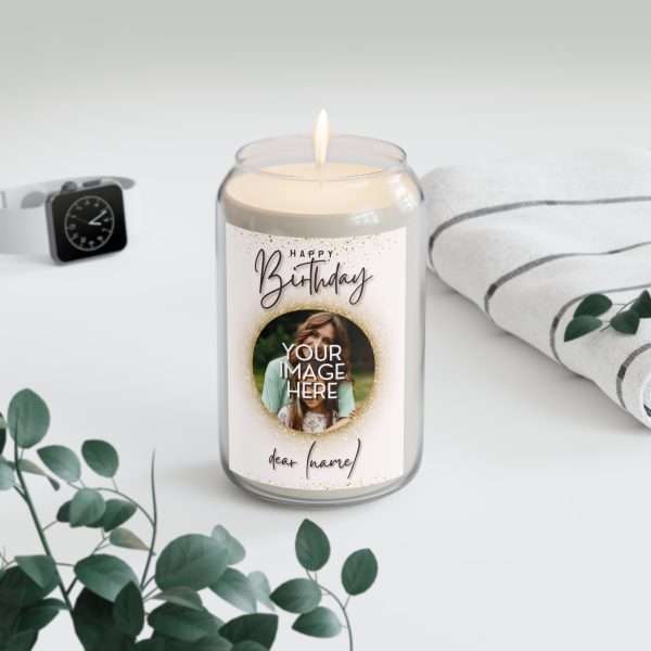 Personalized Birthday Photo Candle, Custom Candle Gift, “Happy Birthday” Photo & Name Candle, Candle with Photo, Customizable Candle
