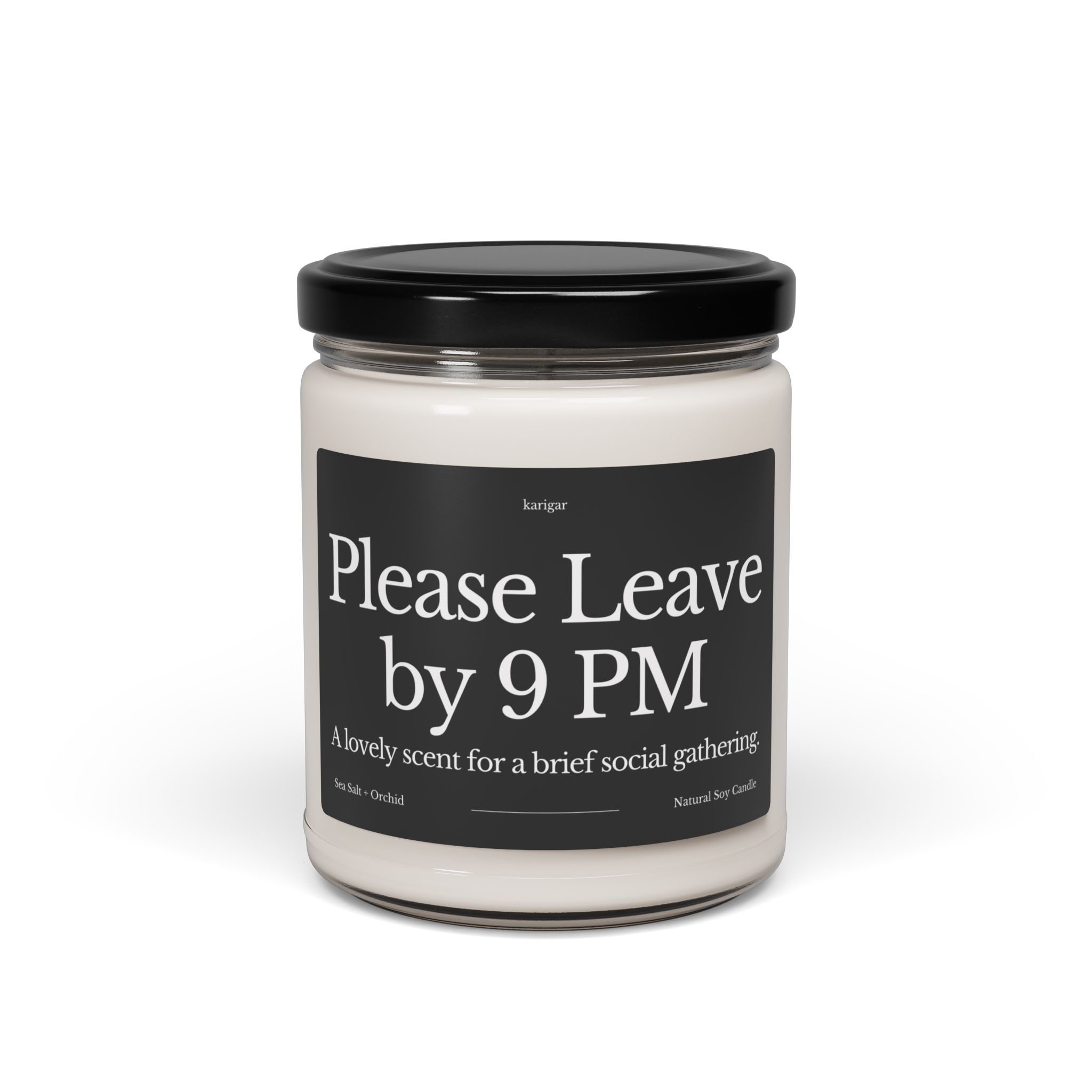Please Leave by 9 PM Funny Candle | Witty Soy Wax Gift for Friends and Introverts | Funny Saying Candles
