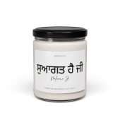 Extend a warm and respectful welcome to every guest with our “Swagat hai ji” (ਸੁਆਗਤ ਹੈ ਜੀ) scented candle. This is one of the most essential punjabi decorative items for any home, creating an atmosphere of true hospitality from the moment someone steps through your door. The label features a beautiful and clean punjabi design, blending modern aesthetics with timeless cultural grace.