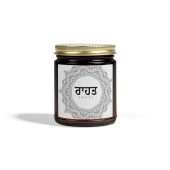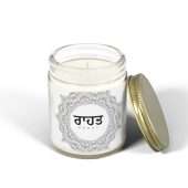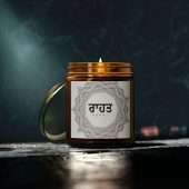 Find soothing ‘Rahat’ (Relief and Comfort) with this exquisite scented candle, designed to bring a sense of ease and tranquility to your Punjabi home. Featuring the calming Gurmukhi word ‘ਰਾਹਤ’ (Rahat) nestled within an elegant mandala design, it’s a beautiful reminder to pause, breathe, and find comfort in the present moment.