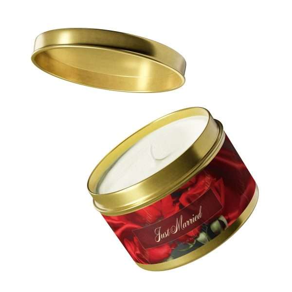 Romantic Just Married Tin Candle – Perfect Wedding Gift