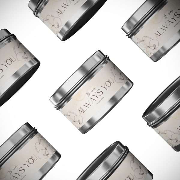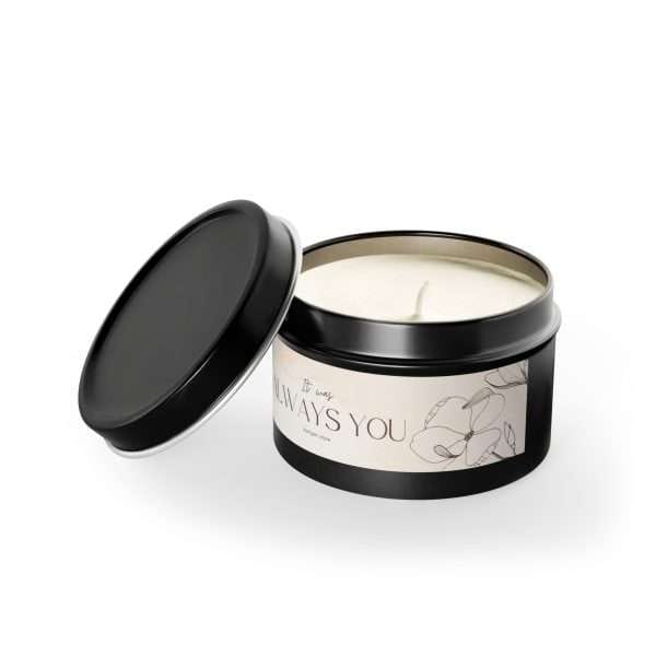 Encased in a chic, reusable tin (available in elegant gold or sophisticated gunmetal/black), this candle carries the heartfelt message, “It was ALWAYS YOU,” making it an exceptionally romantic tin candle gift. Whether you’re celebrating an anniversary, planning a cozy date night, searching for unique eco-friendly scented tin wedding favors, or simply want to tell someone they’re your everything, this candle sets the perfect scene.