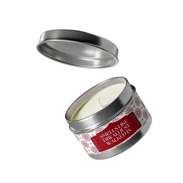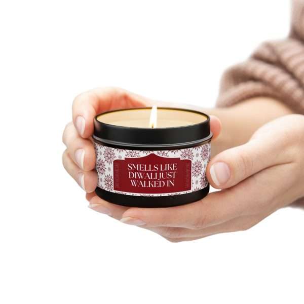 Instantly fill your home with the unmistakable, joyous aroma of the festive season! This candle, with its fun and witty label “Smells like Diwali just walked in,” is the perfect way to kick off your celebrations. It’s no wonder these are some of our top selling scented tin candles during the holidays; they perfectly capture the fragrant essence of sweets, spices, and happiness. This is the ideal modern deepavali party hostess gift that is sure to get a smile.
