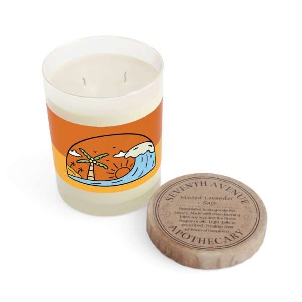 Enjoy a long-lasting sensory getaway! This premium soy wax candle boasts an impressive 65-hour average burn time. The beautiful reusable glass vessel showcases the vibrant, high-quality printed design and promotes a sustainable lifestyle once the candle is finished.